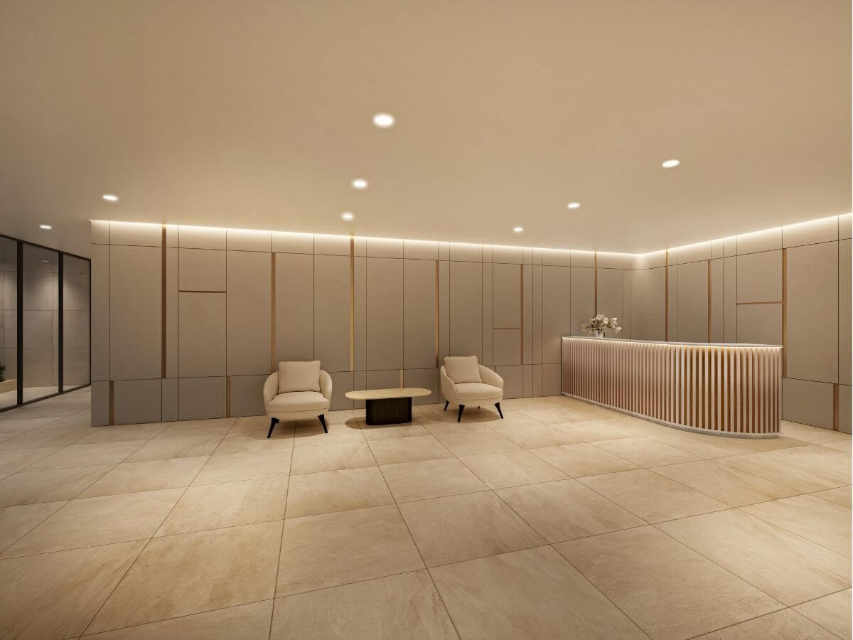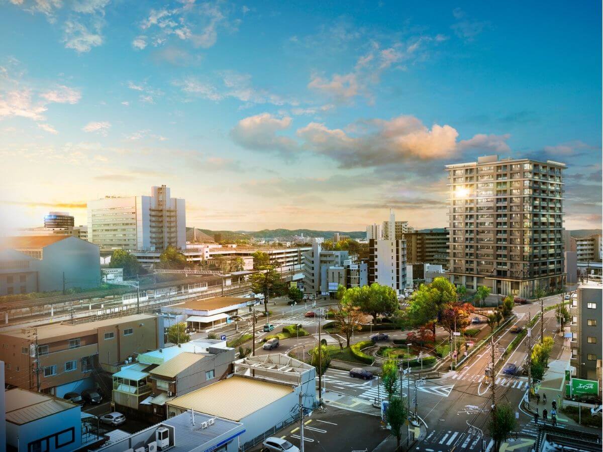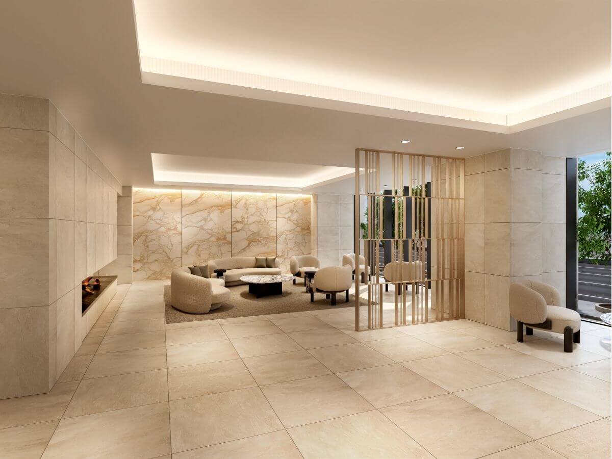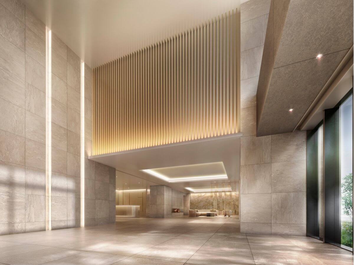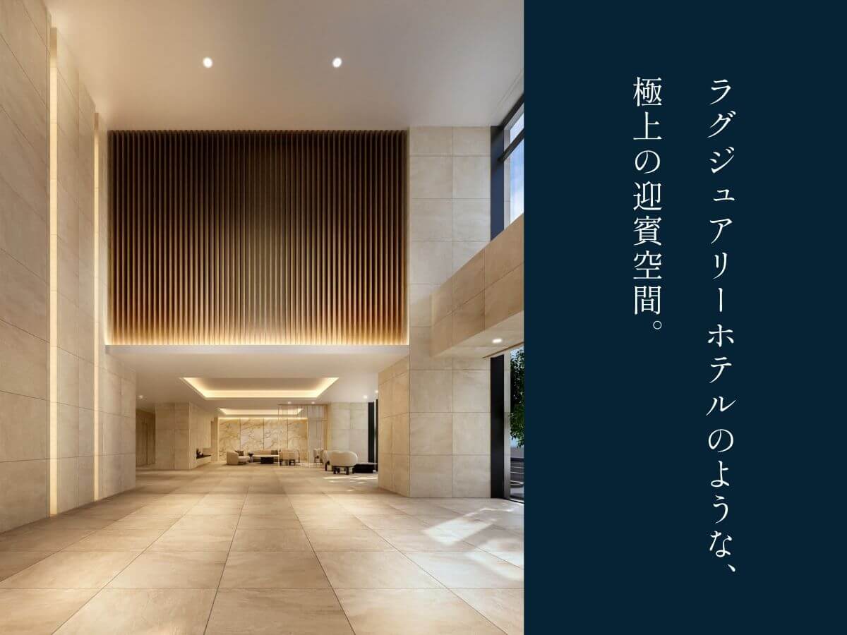 駅前ロータリー直結。ワイドスパン設計中心の1LDK~4LDK。コンシェルジュサービスやランドリールームなど多彩な共用部。