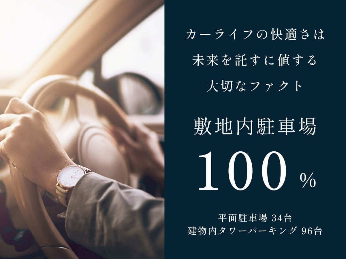 - 130台(内訳)平面駐車場34台・タワーパーキング96台 ※使用料:9,500円~18,000円/月 他に来客用1台