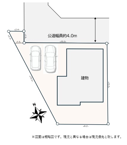 - 北側公道幅員 約 4.0 mに約 15.0m接道