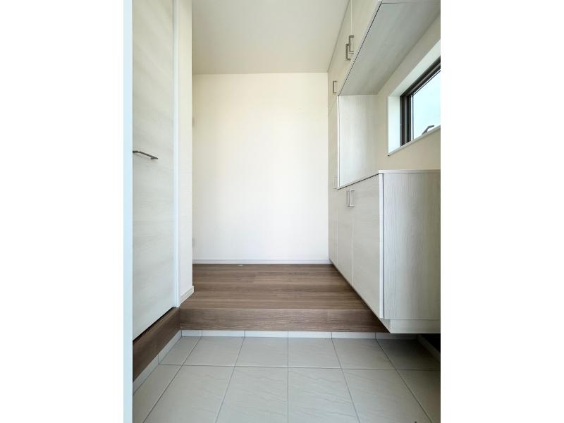 ●玄関 玄関横収納があり掃除用具などすっきり収納!