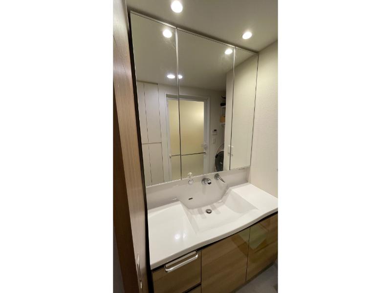 ●化粧洗面台 鏡の裏にたくさんの小物がしまえる収納豊富な洗面台!