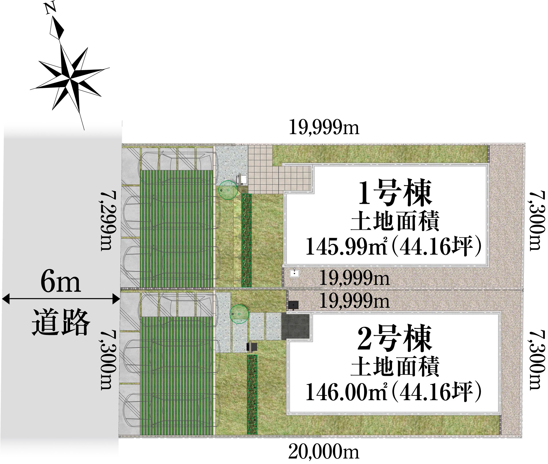 ●区画図 1号棟 土地面積145.99㎡