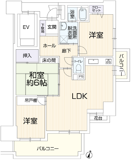 [専有]壁芯:65.28㎡(19.74坪)