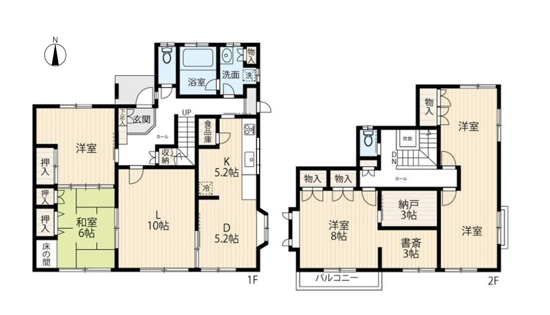 - 141.6㎡(42.83坪) 1階:85.29㎡ 1階:56.31㎡