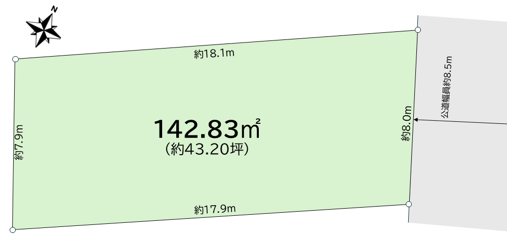 - 北東側公道 幅員 約 8.5mに約 8.0m接道