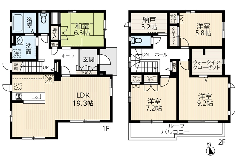 - 132.36㎡(40.03坪) 1階:67.85㎡ 1階:64.51㎡