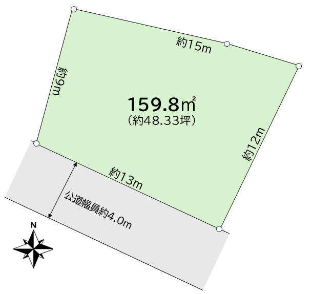 - 南側公道 幅員 約 4.0mに約 13.0m接道