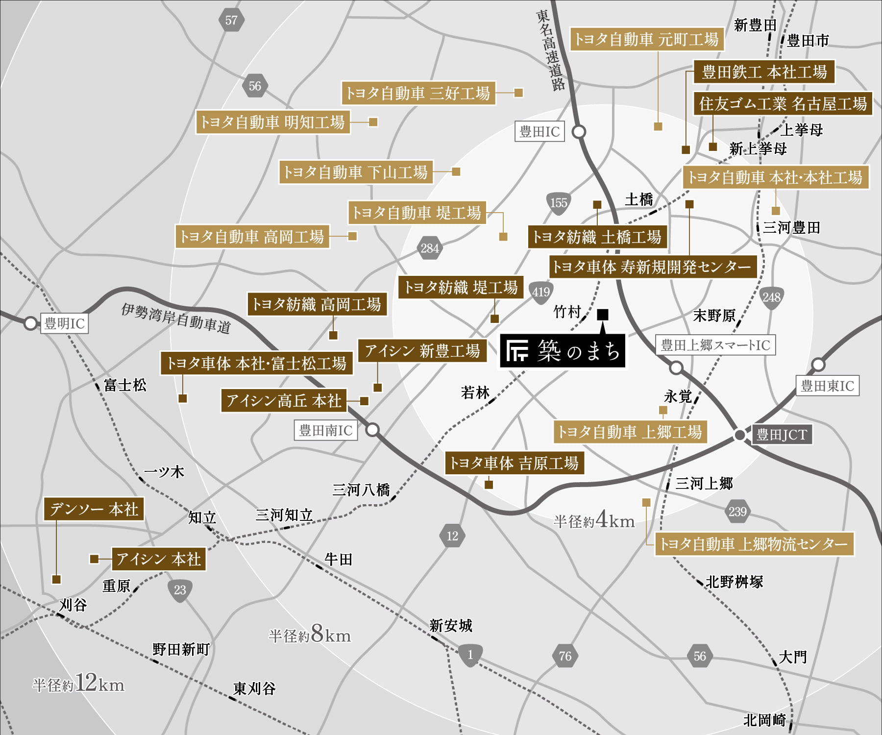 快適なカーアクセスを実現する道路ネットワーク。トヨタ自動車本社・工場をはじめ、豊田市内の各オフィス、主要工場へも快適な通勤が可能です。高速道路のインターチェンジへのアクセスもスムーズで市内外、県内外へのお出かけや出張の際も目的地へスマートにアクセスできます。