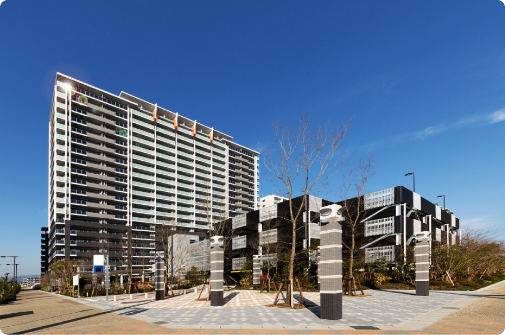 街との調和や人との調和を考えたランドプランやエクステリアを決定。トヨタすまいるライフのマンションがその街の景色を美しく変えたり、人の暮らしを豊かにする。