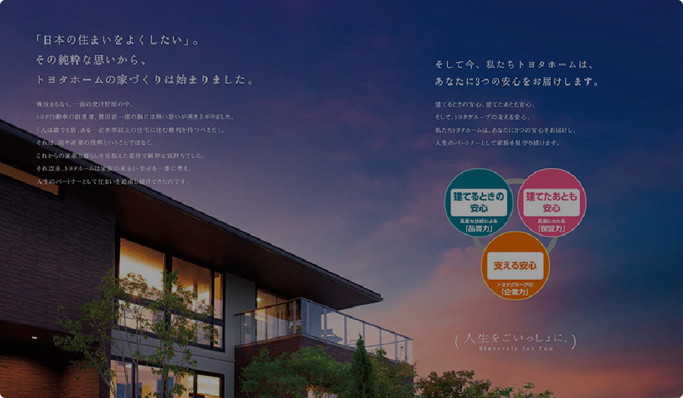 環境と調和するタウンデザインやこだわりのハウスプラン。半世紀以上に渡る地域密着の街づくりを通して、快適で豊かな住環境を提供します。