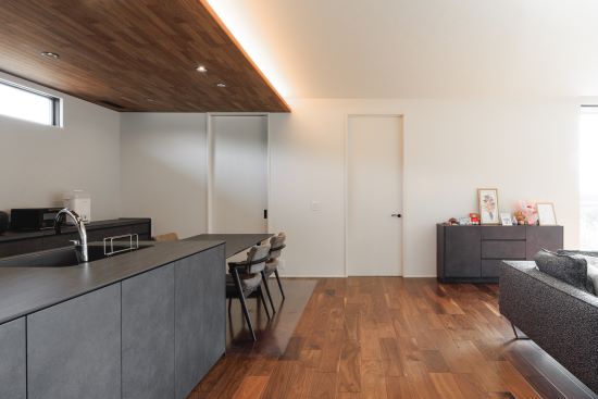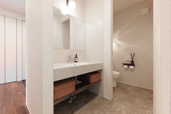 1階建|延床約44坪|敷地約124坪 暮らしに余白のある家 広く明るいLDKを中心に日常が連動していく 暮らしにゆとりのある家 1.つながりのある住まい 2.開放感やゆとりに重きを置いた間取り 3.スムーズな動線と収納力へのこだわり 家族構成/ご主人、奥さま、お子さま1人 建 物/シンセ・ピアーナ 敷地面積/410.00㎡(124.02坪) 建物面積/1階:146.78㎡ 延床面積/146.78㎡(44.40坪) 巧みなタイル使いで住まいに高級感をプラス 内装・外装ともにさまざまなデザインの タイルを多く用いることで“質”としての 高級感を演出 来客用の洗面室とトイレはゲストが快適に過ごせる場所に 来客用の洗面室とトイレは特におしゃれな 雰囲気にこだわり、シンプルで“ゆとり”の ある場所に。 キッチンまわりの収納力の高さは抜群。天板とダイニングテーブルを同素材で揃えた“美しさ”が目を引きます。 移動を最小限に抑えられる回遊動線。キッチンからウォークインパントリーへ、さらにウォークインクローゼットまでスムーズな動線。 十分な作業スペースが設けられた広いランドリールーム。洗濯の時間が楽しくなりそう。 キーワード モダン外観 家事ラク動線 面積 40〜45坪まで