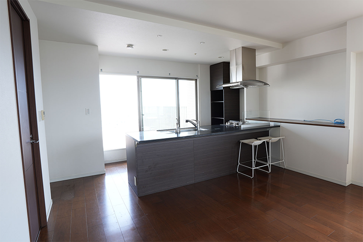 4LDKだった物件を3LDKにすることで、部屋数を減らしてゆったりと暮らせる空間を創出し、ゆったりと暮らせる空間に生まれ変わりました。LDKの間にあった引き戸は撤去し、LDKを見通しのいいひとつなぎの空間に。収納が不足していたため、玄関横にあった洋室をサービスルーム+ウォークインクローゼットに変更し、収納力が大幅にアップしました。築16年とは思えない、トレンドのインテリアと最新住宅設備を取り入れたハイグレードなフルリフォーム物件となりました。