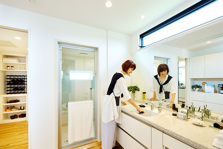 小型犬であれば、すっぽりと入るサイズと深さの洗面台を採用。ワンちゃんのシャンプーを洗面室で行うことができます。