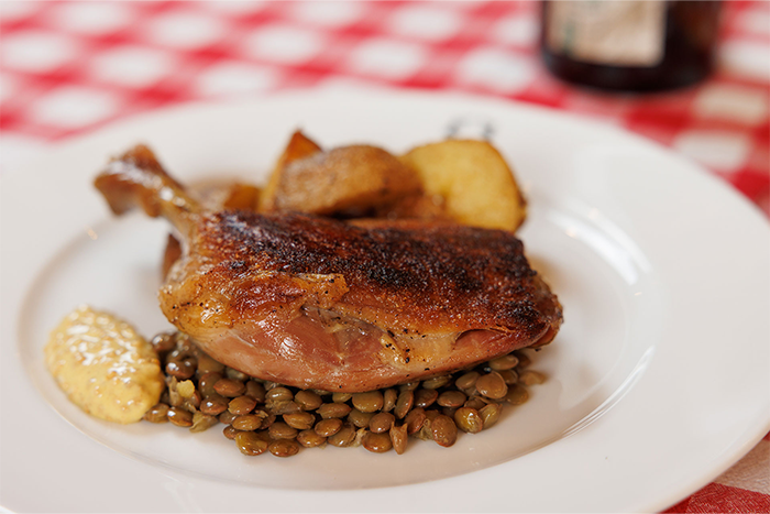 低温の油でじっくりと火を入れていく「鴨のコンフィ」(2,200円)も、フレンチの定番。