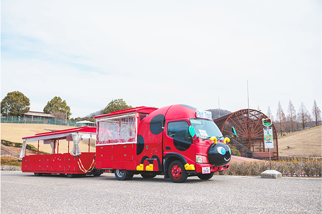 園内には、テントウムシのデザインが目を引くパークトレイン(有料)が走っています。