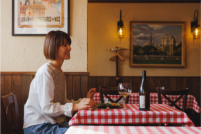 かしこまった雰囲気ではなく、気軽にワイン1杯から楽しめるお店です。