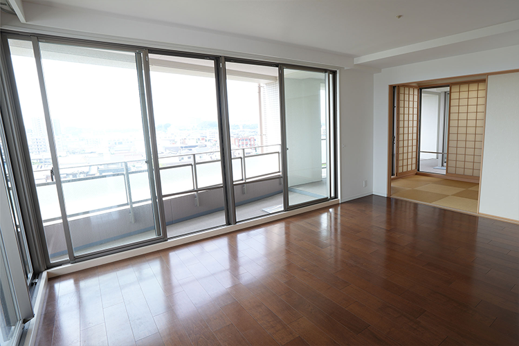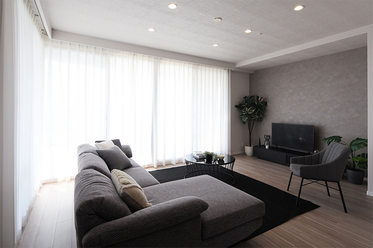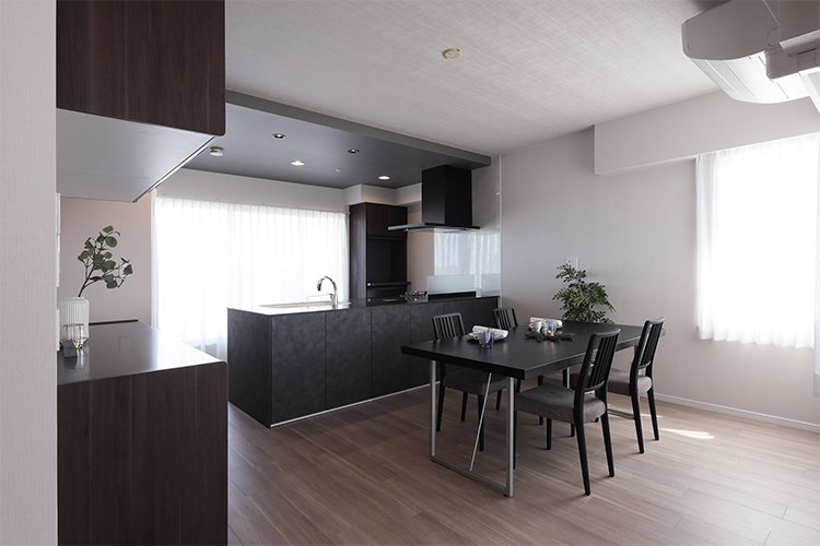 4LDKだった物件を3LDKにすることで、部屋数を減らしてゆったりと暮らせる空間を創出し、ゆったりと暮らせる空間に生まれ変わりました。LDKの間にあった引き戸は撤去し、LDKを見通しのいいひとつなぎの空間に。収納が不足していたため、玄関横にあった洋室をサービスルーム+ウォークインクローゼットに変更し、収納力が大幅にアップしました。築16年とは思えない、トレンドのインテリアと最新住宅設備を取り入れたハイグレードなフルリフォーム物件となりました。