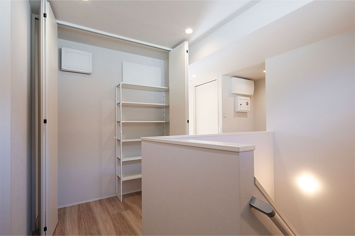 階段を上がってすぐ2階のホールにも、収納スペースがあります。
