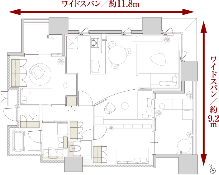 ※当モデルルームプランのご紹介はモデルルーム仕様・設備をご紹介するものであり、各タイプの仕様・設備につきましては、一部異なる場合がございます。詳細については、係員までお問い合わせください。