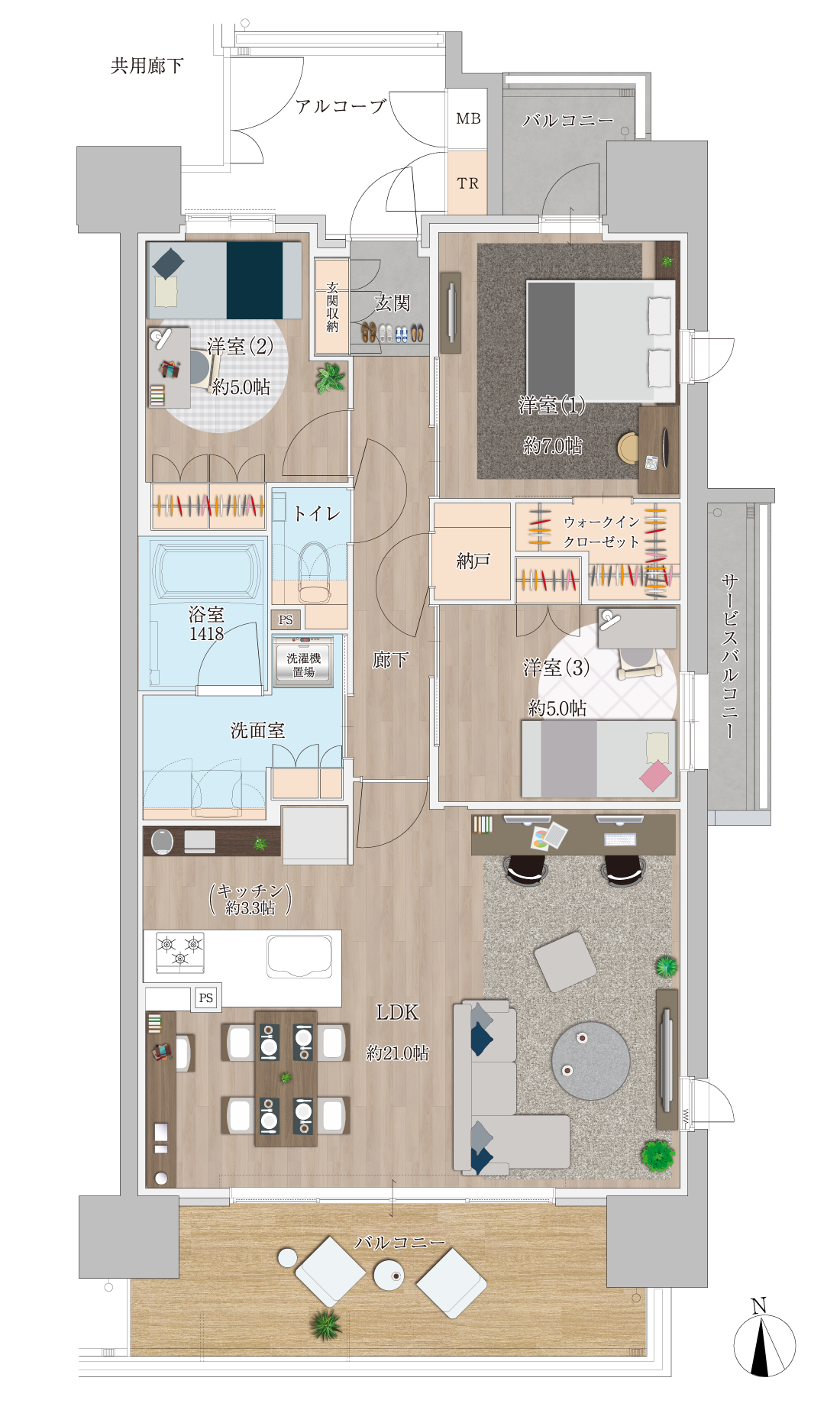 ■サービスバルコニー面積/3.20㎡(0.96坪)